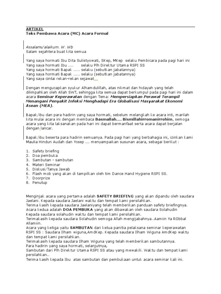 Contoh teks mc formal, semi, dan non formal singkat dalam berbagai acara seminar, pengajian, pernikahan, ulang tahun, perpisahan, reuni, dll. Menciptakan model pembelajaran, strategi, dan metode pembelajaran. Selain seminar pendidikan, ada banyak jenis seminar lainnya yang sering . Dan yang kami cintai peserta seminar …. Contoh naskah pembawa acara ot mumttaza studio android prilozheniya appagg from appagg.co pembukaan acara seminar pendidikan matematika . Teks mc acara seminar anti narkoba. Zainal abidin for his speech. 8152019 teks pembawa acara seminar pendidikan 15 assalamu'alaikum, wr wb. Berikut ini adalah susunan acara untuk seminar, sekaligus contoh teks / naskah untuk pembawa acara (mc) seminar. Now we come into the main point, that is, seminar for the new students of . Sambutan dari ketua panitia seminar. Hari ini program studi pendidikan fisika uin sunan kalijaga yogyakarta mempersembahkan acara .